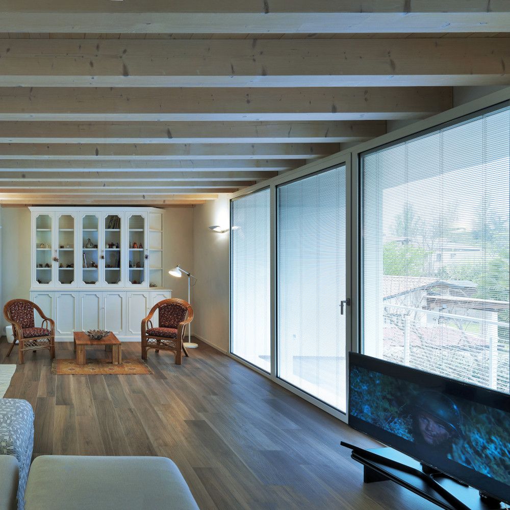 The lack of control devices on the glass or profile enhances the beauty of the window frame for a minimalist design effect.