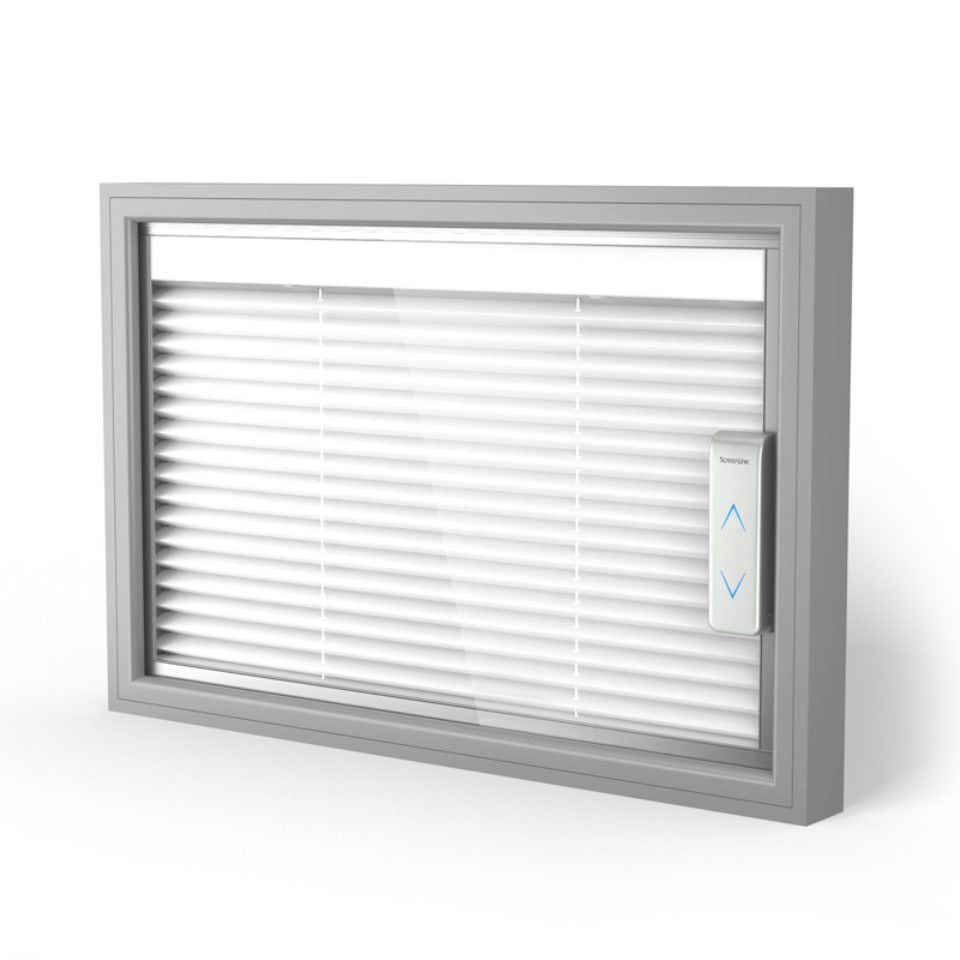 ScreenLine® SL20-22W is a battery-operated motorised system with raising function for pleated blinds incorporated within 20-mm or 22-mm double glazing units and featuring Verosol® fabrics, which are coated with an aluminium layer on one side.