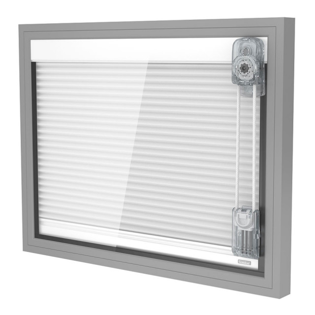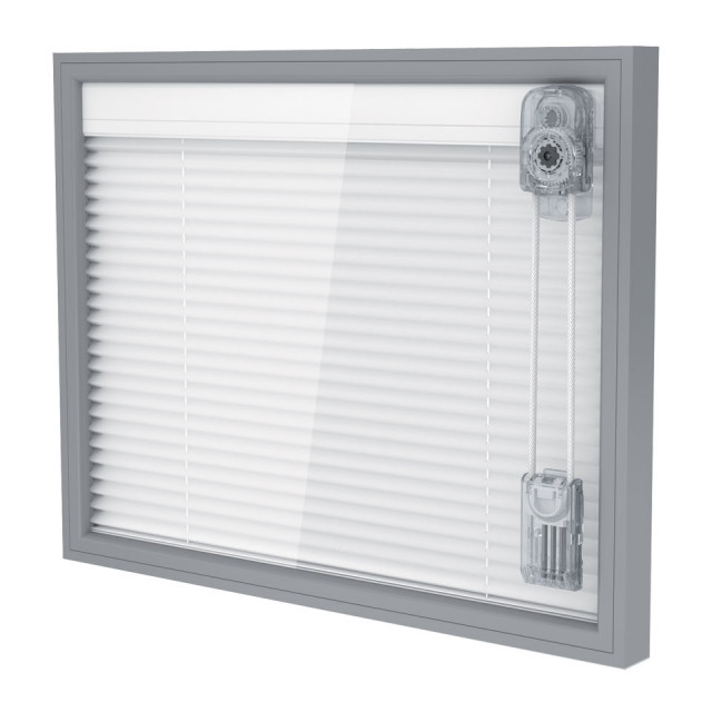 The cord contro kit (cord loop, cord tensioner and magnetic drive) is available in different colours, in order to perfectly match the window frame style.