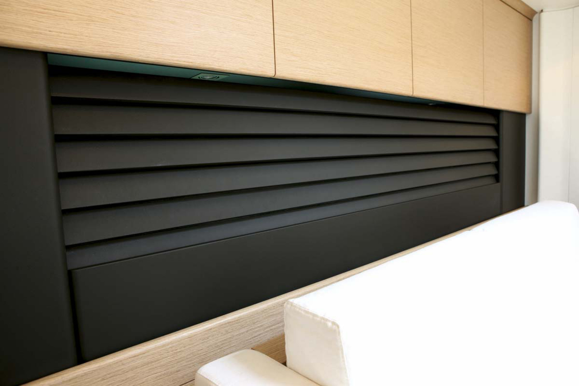 Comfort also depends on a low noise level and, in order not to disturb the calm and tranquillity of the sea while tilting and rising/lowering the blind, we designed mechanics that ensure maximum fluidity of movement, and we equipped the motorised solutions with ultra-silent provided by Lutron.