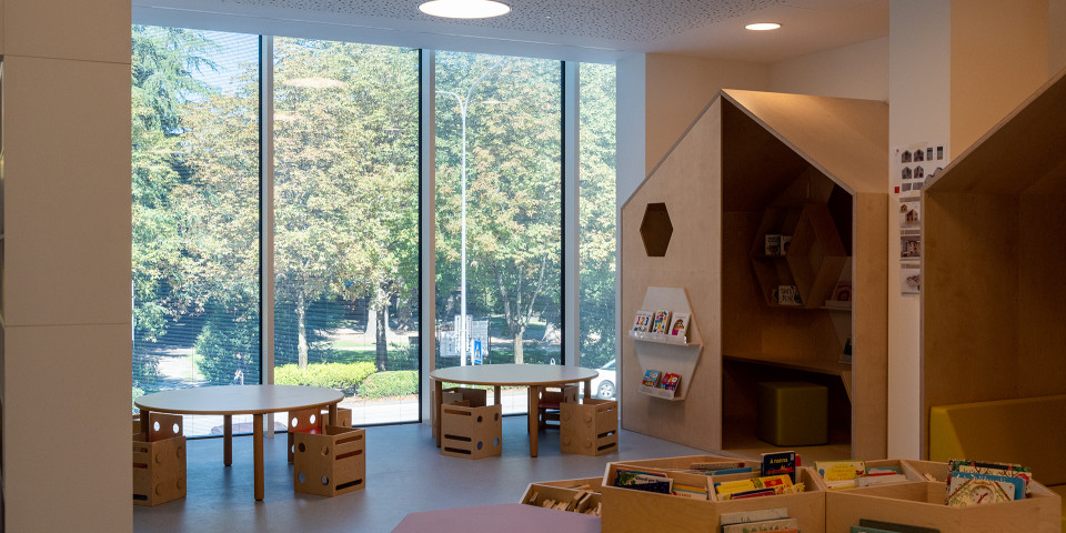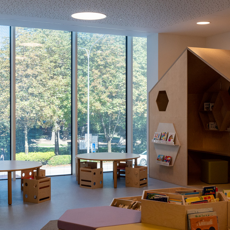 Playing, reading and studying in a library embraced by the nature of Valsugana (Italy)