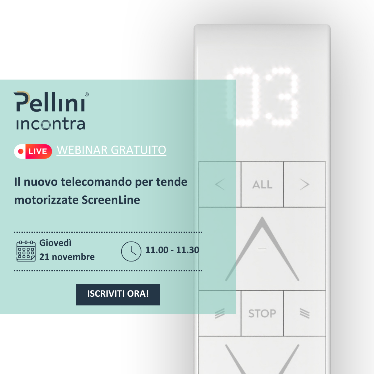 Il nuovo telecomando per tende motorizzate ScreenLine è stato completamente rivisto nel design e nella funzionalità, per permettere agli utenti di controllare in maniera semplice e intuitiva le proprie schermature.