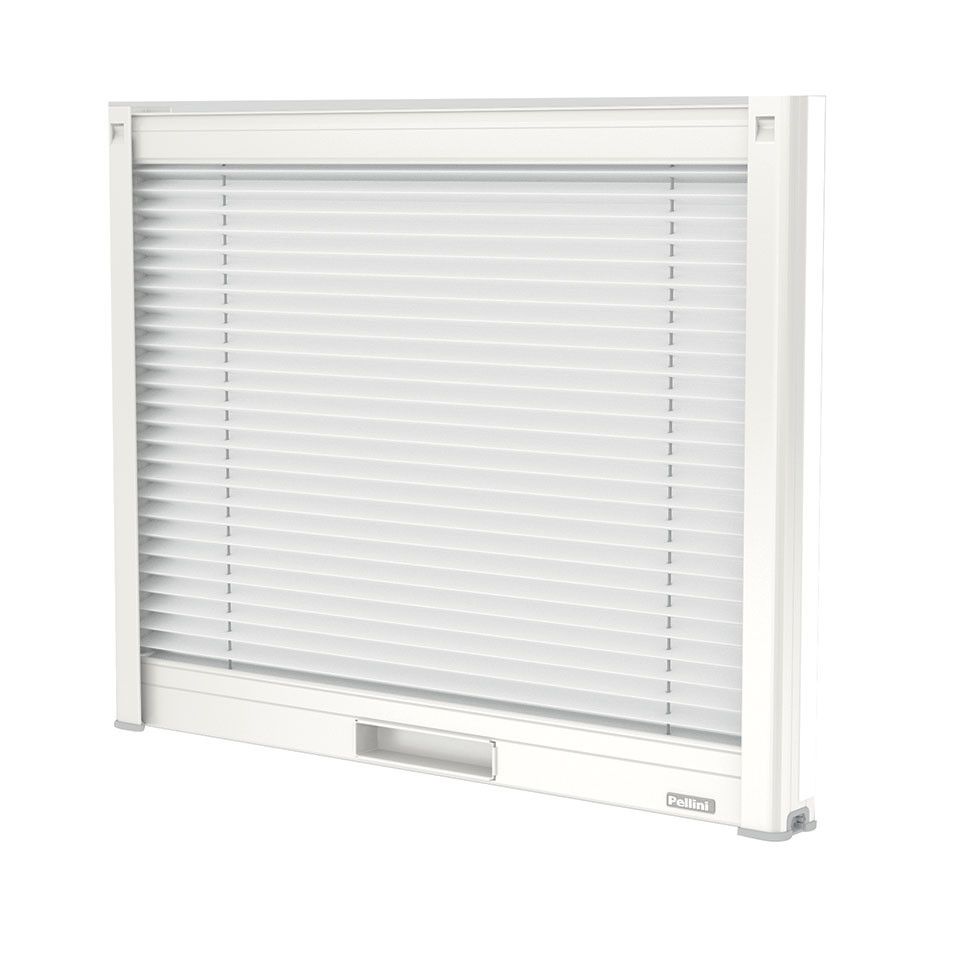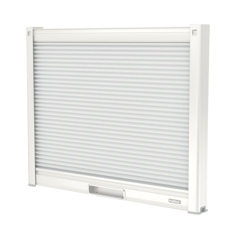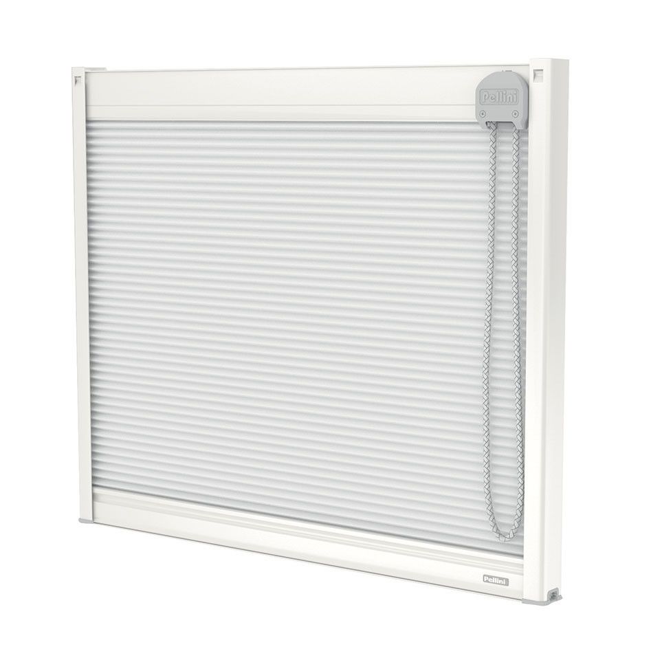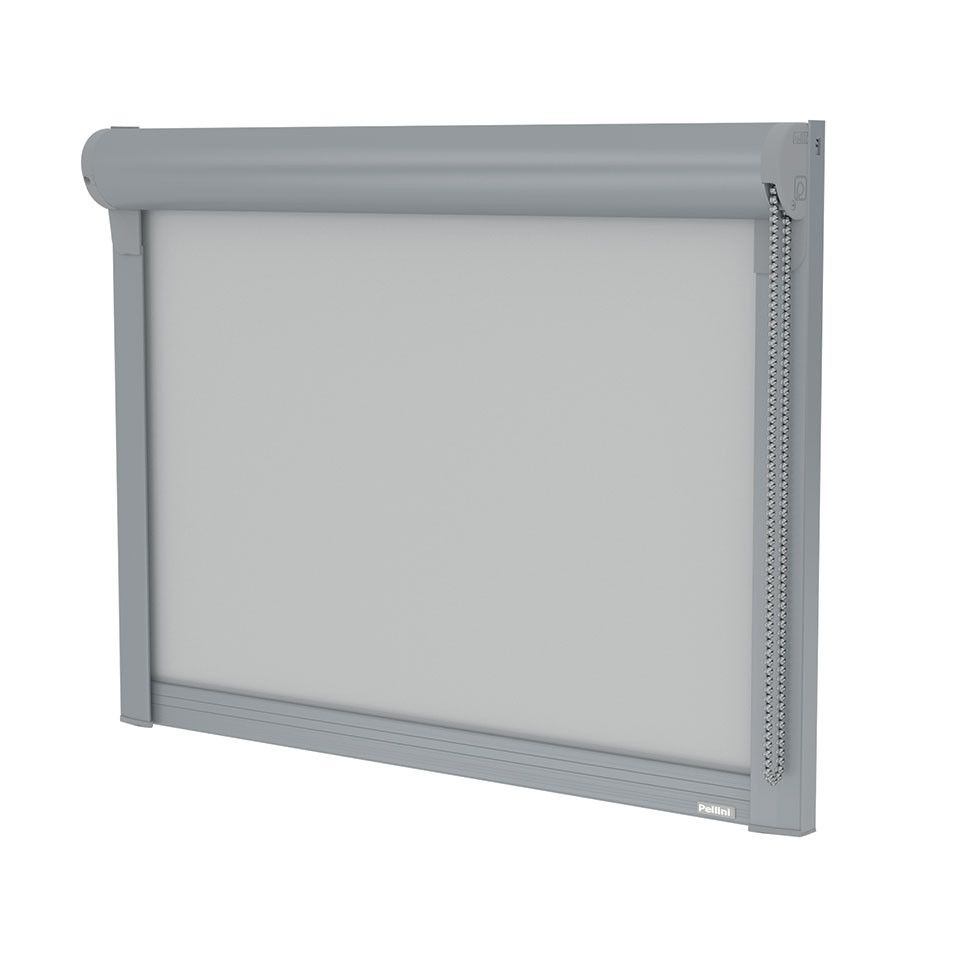 È possibile, su richiesta, posizionare il biadesivo sul retro delle guide, per un’installazione su serramento o fuori luce. Il fondale e il tessuto scorrono all’interno delle guide laterali per annullare il passaggio di luce laterale. Il profilo di copertura, a chiusura del cassonetto, assicura un corretto svolgimento del tessuto, evitando un possibile danneggiamento dei componenti interni al cassonetto.