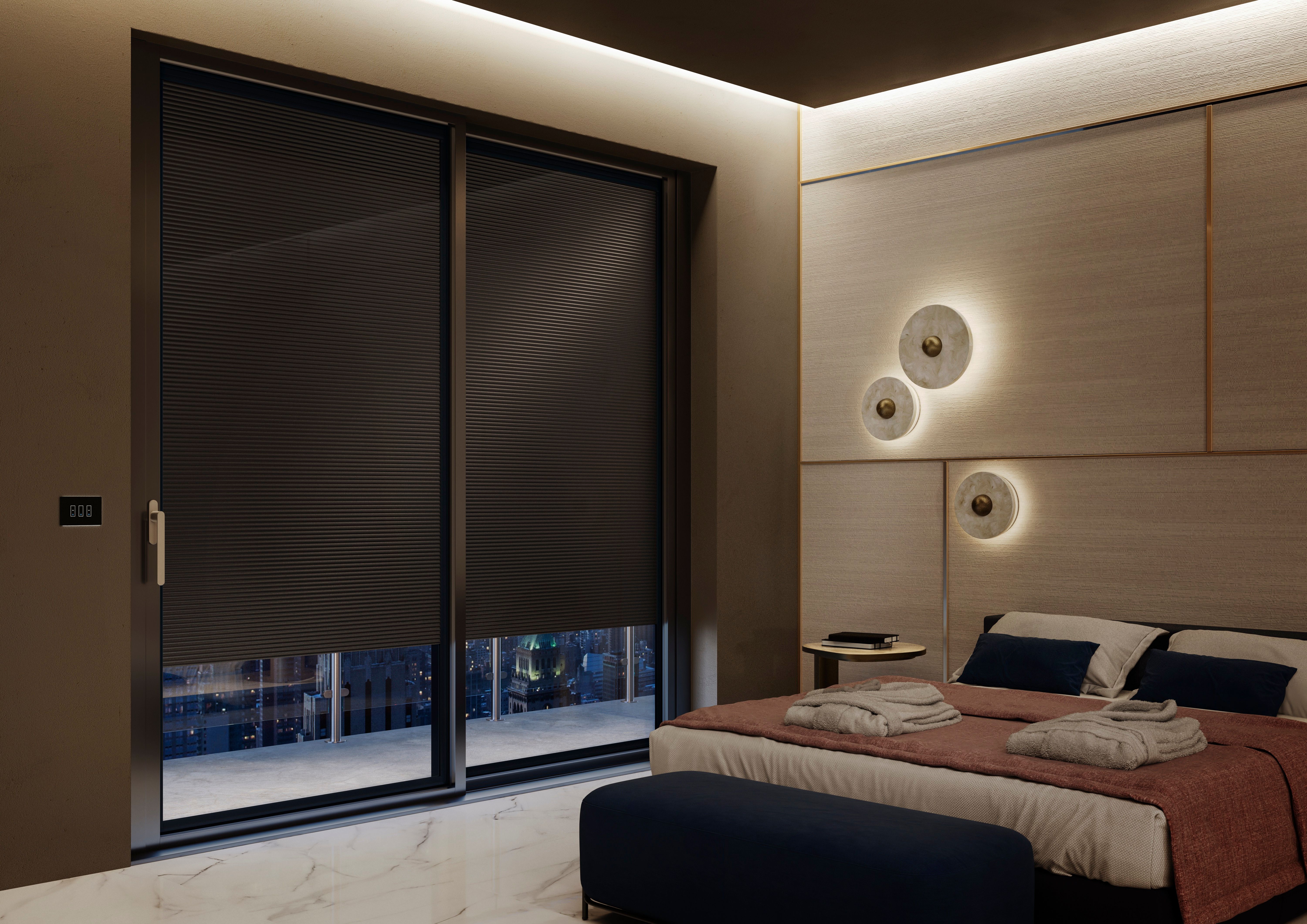 Tutti gli elementi a vista sono proposti in nero, creando, a tenda completamente abbassata, un effetto total black uniforme. Una scelta che esalta la pulizia delle linee di ScreenLine Wave e si integra perfettamente in ambienti contemporanei e minimalisti, in linea con le tonalità oggi più attuali per serramenti e facciate.