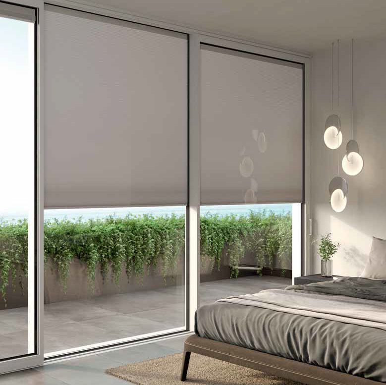 ScreenLine® Blackout è la tenda plissé oscurante integrata in vetrocamera che grazie alla struttura a nido d’ape e al rivestimento interno di alluminio blocca completamente il passaggio della luce e, quando completamente abbassata, oscura la stanza. La soluzione perfetta per le camere da letto, là dove il massimo oscuramento è la condizione necessaria per un sonno tranquillo e riposante